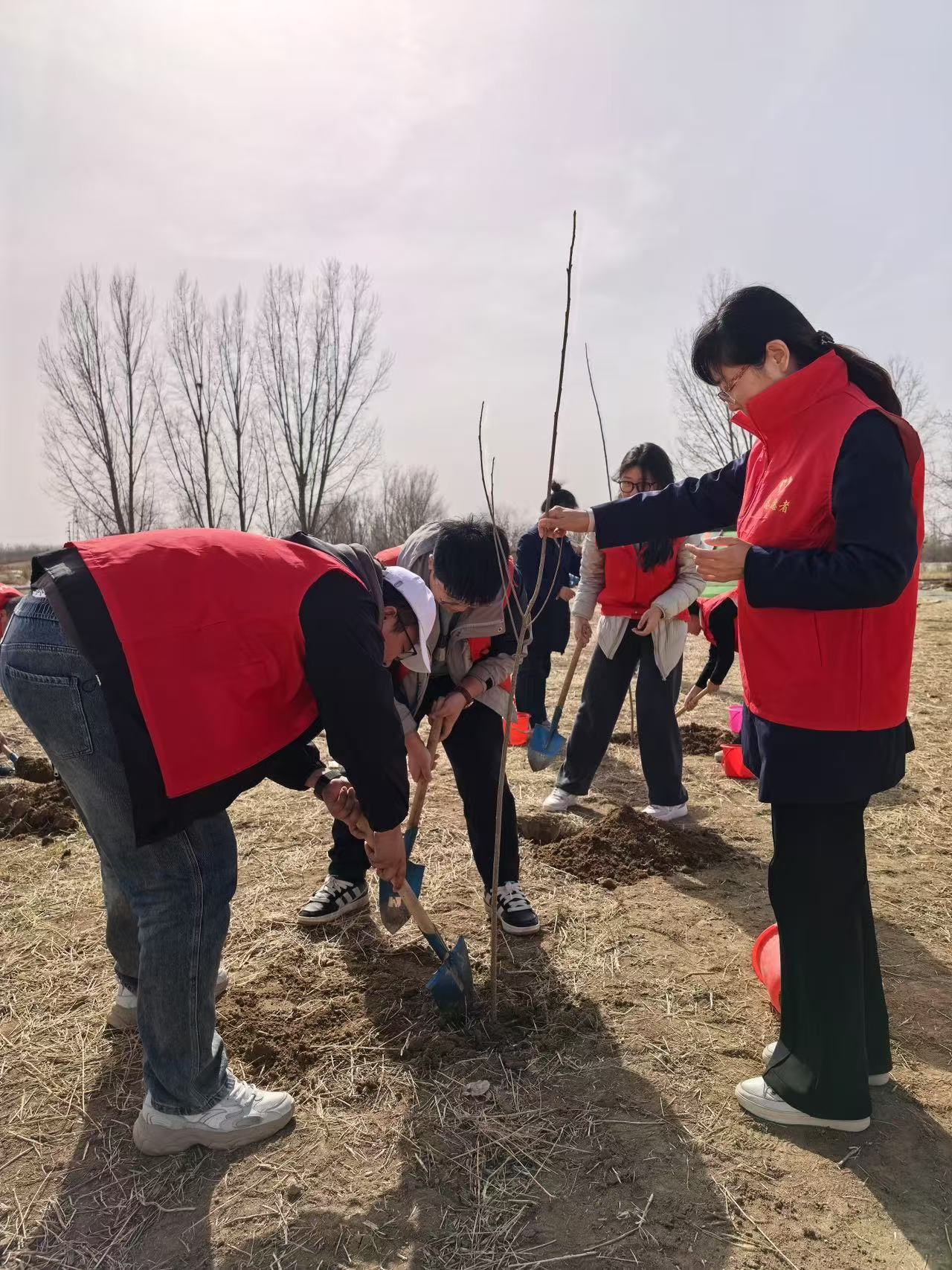 植樹(shù)現場(chǎng),工作人員首先為大家分發(fā)了小樹(shù)苗、鐵鍬、水桶等工具,并耐心講解了植樹(shù)的要點(diǎn)和注意事項。大家興致盎然,干勁十足,手持鐵鍬、水桶等工具,兩兩一組,分工協(xié)作,緊密配合,揮鍬鏟土、扶樹(shù)正苗、澆水培土……每個(gè)環(huán)節井然有序,確保每株樹(shù)苗栽種規范、穩固扎根,現場(chǎng)呈現出一片熱火朝天的勞動(dòng)景象。陽(yáng)光照耀下,一株株新栽種的苗木迎風(fēng)挺立、錯落有致,煥發(fā)出蓬勃生機,孕育著(zhù)綠色新希望。植樹(shù)結束,大家紛紛拿起畫(huà)筆,親手為自己的小樹(shù)苗設計和制作獨一無(wú)二的“身份證”。
